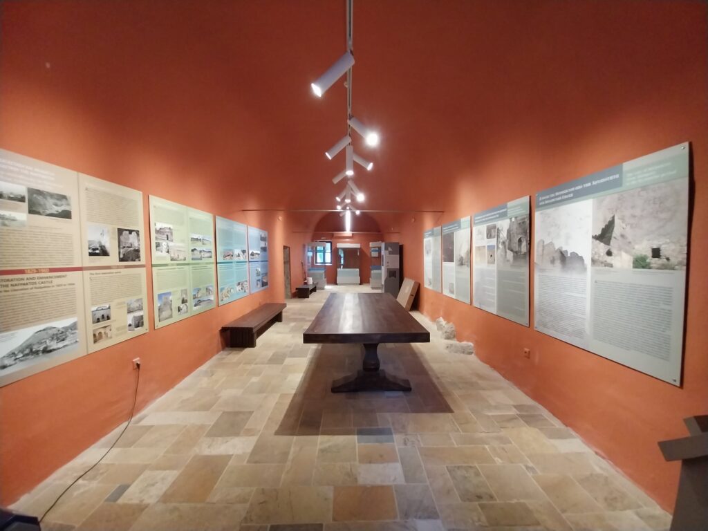 Για τη μουσειακή περιήγηση στο κάστρο αξιοποιήθηκαν δύο κτήρια. Στο πρώτο, τη λεγόμενη Οπλοθήκη, μέσω εποπτικού υλικού ο επισκέπτης μπορεί να δει την ιστορία της πόλης να ξετυλίγεται μπροστά του, από τα αρχαία χρόνια έως και την απελευθέρωσή της από το οθωμανικό ζυγό. Εκεί επίσης μπορεί να πάρει πληροφορίες για τα αναστηλωτικά προγράμματα που έχουν υλοποιηθεί στην καστρόπολη της Ναυπάκτου, τα οποία όπως χαρακτηριστικά μας τόνισε, «δεν είναι λίγα». Κι αυτό γιατί στο πέρασμα των δεκαετιών μπορεί να είχαν γίνει σημειακές παρεμβάσεις, όμως με την ενοποίηση των Εφορειών Αρχαιοτήτων το 2014, σχεδιάστηκε ένα μεγάλο αναστηλωτικό πρόγραμμα, ενώ ταυτόχρονα ετέθη ως στόχος και η υλοποίηση μίας παλαιότερης ιδέας της αείμνηστης Φραγκίσκας Κεφαλλωνίτου, η οποία διατέλεσε προϊσταμένη της 22ης Εφορείας Βυζαντινών Αρχαιοτήτων στη Ναύπακτο, έχοντας οραματιστεί το μουσείο στην ακρόπολή της.