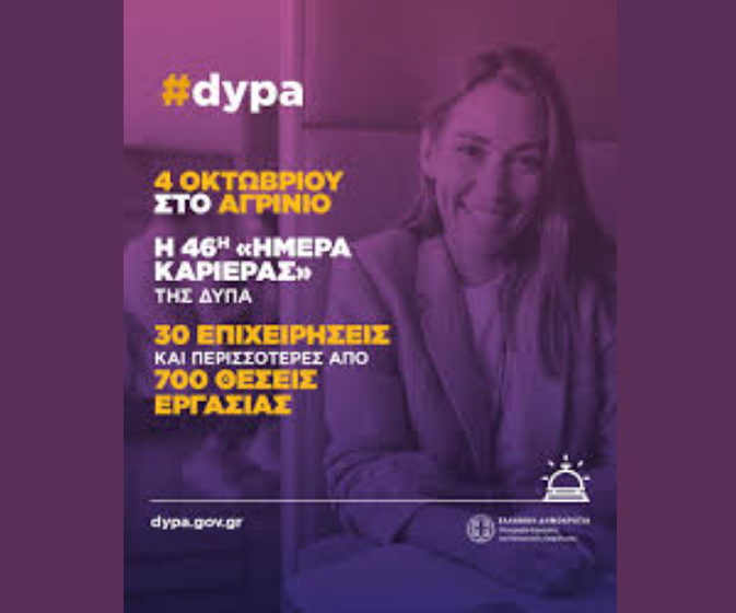 Το Επιμελητήριο Αιτωλοακαρνανίας ενημερώνει τις επιχειρήσεις–μέλη του ότι η Δ.ΥΠ.Α. με την υποστήριξη του Επιμελητηρίου Αιτωλοακαρνανίας, διοργανώνει την 46η Ημέρα Καριέρας στο Αγρίνιο το Σάββατο 4 Οκτωβρίου 2025, στη Δημοτική Αγορά (Σκαλτσοδήμου 9), από 10:00 έως 18:00.