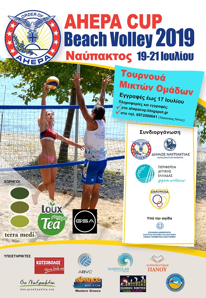 Με την κυκλοφορία της αφίσας ξεκίνησαν και επισήμως οι δηλώσεις συμμετοχής για το AHEPA CUP 2019 Beach Volleyball tournament (19-21 Ιουλίου, Ναύπακτος).