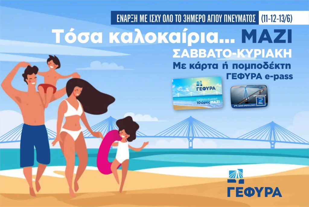 Η ενεργοποίηση του εκπτωτικού προϊόντος για μία επιπλέον ημέρα (Δευτέρα 13/6), αποτελεί καρπό της συνεργασίας της ΓΕΦΥΡΑ Α.Ε. με την Περιφέρεια Δυτικής Ελλάδας, θεσμούς της τοπικής αυτοδιοίκησης και επαγγελματικές ενώσεις της περιοχής, καθώς και συλλογικότητες πολιτών που δρουν υπέρ της τουριστικής ανάπτυξης του τόπου τους.