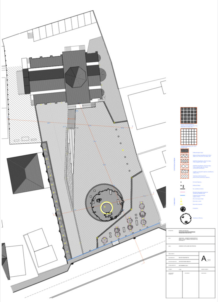 - Διαμόρφωση δυο επίπεδων στον κοινόχρηστο χώρο, όπου το καθένα απευθύνεται στην εκάστοτε είσοδο του Ιερού Ναού
