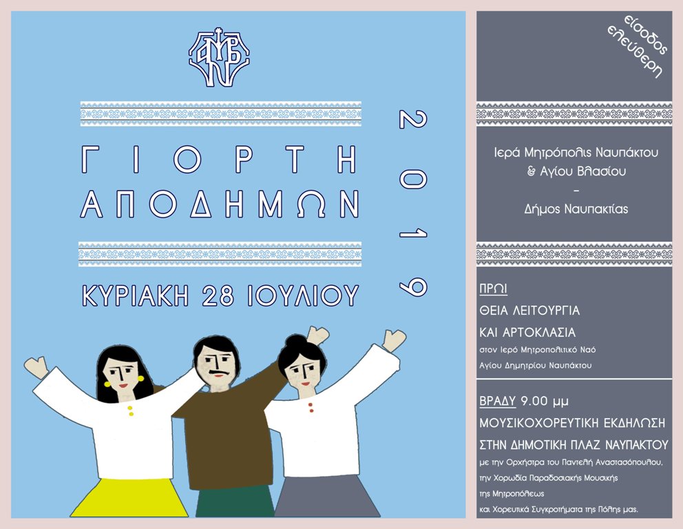 28/7/2019, ώρα 9:00μ.μ. Γιορτή των Ξενιτεμένων, Ι. Μητρόπολη Ναυπάκτου