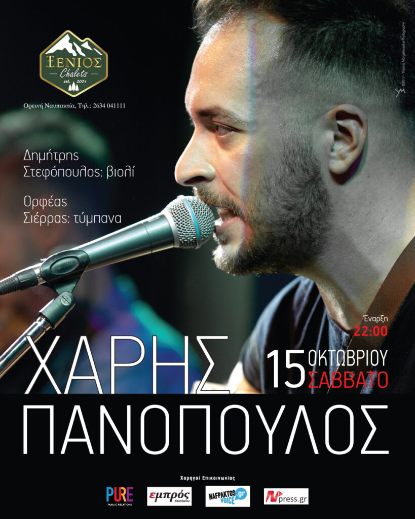 Ο Χάρης Πανόπουλος καλωσορίζει το φθινόπωρο με μια ζωντανή εμφάνιση στα XENIOS CHALETS, το Σάββατο 15 Οκτωβρίου.