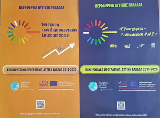 – «Εξωστρέφεια – Διεθνοποίηση των Μικρομεσαίων Επιχειρήσεων της Περιφέρειας Δυτικής Ελλάδας – έτους 2019», συνολικού προϋπολογισμού 4 εκατομμυρίων ευρώ. Αφορά νέες και υφιστάμενες μικρομεσαίες επιχειρήσεις που θέλουν να αναβαθμιστούν προκειμένου να βελτιώσουν την ποιότητα του παραγόμενου προϊόντος τους και να μειώσουν το κόστος παραγωγής τους, προκειμένου να είναι περισσότερο ανταγωνιστικές στις αγορές του εξωτερικού και να δημιουργήσουν νέες θέσεις εργασίας.