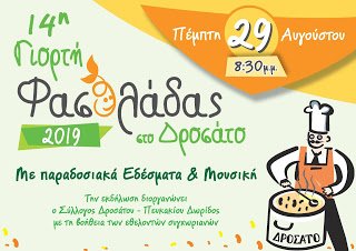 Στο Δροσάτο Δωρίδας εδώ και δεκατέσσερα χρόνια, ο εορτασμός της εκκλησίας του Αγίου Ιωάννου του Προδρόμου στο κοιμητήριο του χωριού έχει συνδυαστεί με την παρασκευή της παραδοσιακής νηστίσιμης φασολάδας στο χώρο της πλατείας. Κάθε χρόνο στις 29 Αυγούστου, ημέρα Αποτομής της Τίμιας Κεφαλής του Αγίου, το πρωί τελείται Θεία Λειτουργία στον ναό και το βράδυ, με τη βοήθεια και εθελοντική συμμετοχή των συγχωριανών, οργανώνεται η καθιερωμένη «Γιορτή Φασολάδας», όπου μοιράζεται σε όλους τους παρευρισκόμενους φρεσκομαγειρεμένη φασολάδα που τη συνοδεύουν παραδοσιακοί μεζέδες φτιαγμένοι από τις γυναίκες του χωριού. Έτσι λοιπόν θα γίνει και φέτος, σήμερα Πέμπτη.