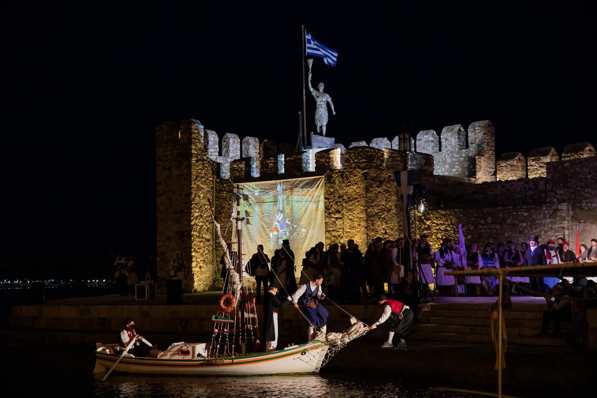 Πρόκειται για ένα ιδιαίτερης σημασίας δρώμενο που προσεγγίζει σημαντικές στιγμές του αγώνα των Ελλήνων οπλαρχηγών για την Απελευθέρωση της Ναυπάκτου και την άφιξη του Πρώτου Κυβερνήτη της Ελλάδας, Ιωάννη Καποδίστρια στην πόλη. Το δρώμενο παρουσιάζεται από τα μέλη του Συλλόγου Αναβίωσης Απογόνων Σουλιωτών Ναυπακτίας «Έπαχτος». Τη συγγραφή, τους διαλόγους και την αφήγηση υπογράφει ο φιλόλογος-ιστορικός Γεώργιος Κουρκούτας, ενώ την επιμέλεια και την ευθύνη του δρωμένου έχει η Πρόεδρος του Συλλόγου Αναβίωσης Απογόνων Σουλιωτών Ναυπακτίας «Έπαχτος», Μαρία Σαγώνα.