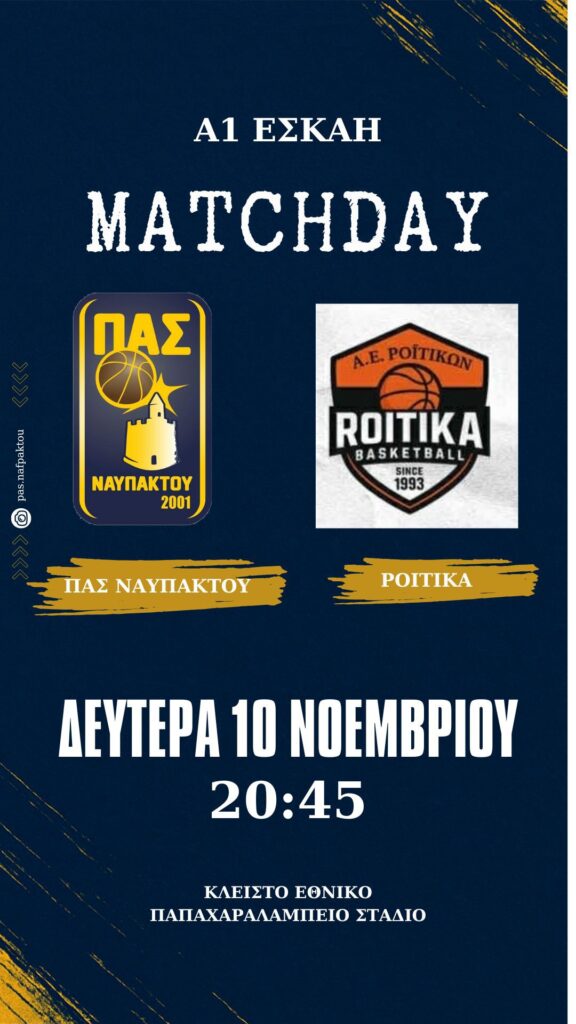Σε ένα από τα πιο δύσκολα παιχνίδια της σεζόν, ο ΠΑΣ Ναυπάκτου υποδέχεται σήμερα Δευτέρα στο Παπαχαραλαμπειο κλειστό γυμναστήριο τα Ροΐτικα, μία από τις καλύτερες ομάδες της κατηγορίας.