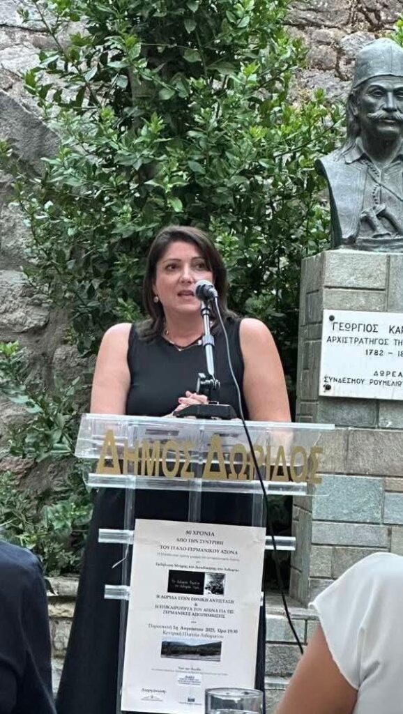 Η Ένωση Δωριέων Επιστημόνων (ΕΔΕΠ) ευχαριστεί θερμά και εκφράζει τα θερμά της συγχαρητήρια στην Πρόεδρο της Κοινότητας Λιδωρικίου και του Πολιτιστικού Συλλόγου Λιδωρικίου κ. Αργυρώ Λαγγουράνη για την εξαίρετη συνδιοργάνωση και την επιτυχία της εκδήλωσης για τα 80 Χρόνια από την συντριβή του Ιταλό-Γερμανικού Άξονα που έλαβε χώρα σήμερα, την 1η Αυγούστου, 2025, στην κεντρική Πλατεία του Λιδωρικίου με θέμα: « Η Δωρίδα στην Αντίσταση , η Επικαιρότητα του Αγώνα για τις Γερμανικές αποζημιώσεις» .