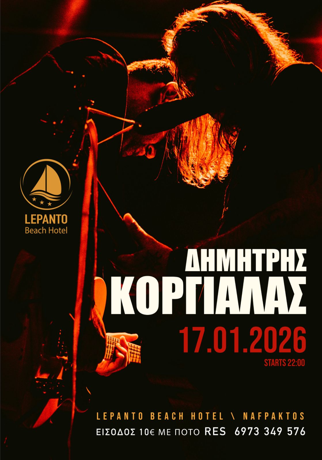 Ο Δημήτρης Κοργιαλάς, το Σάββατο 17 Ιανουαρίου, live στη σκηνή του Lepanto Beach Hotel