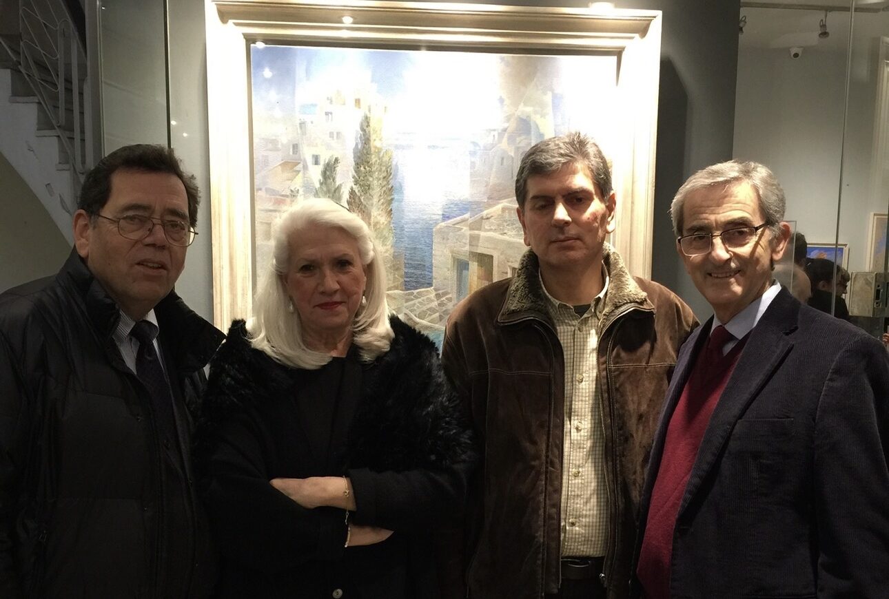 φωτο: από το προσωπικό αρχείο του Χρίστου Καρβούνη, όπου απεικονίζεται ο ίδιος, η σύζυγός του Γεωργία Καρβούνη, ο ζωγράφος Νίκος Καλαντζής και ο Αρις Σισμάνης (από έκθεση του Νίκου Καλαντζή στην γκαλερί artion στην Αθήνα)