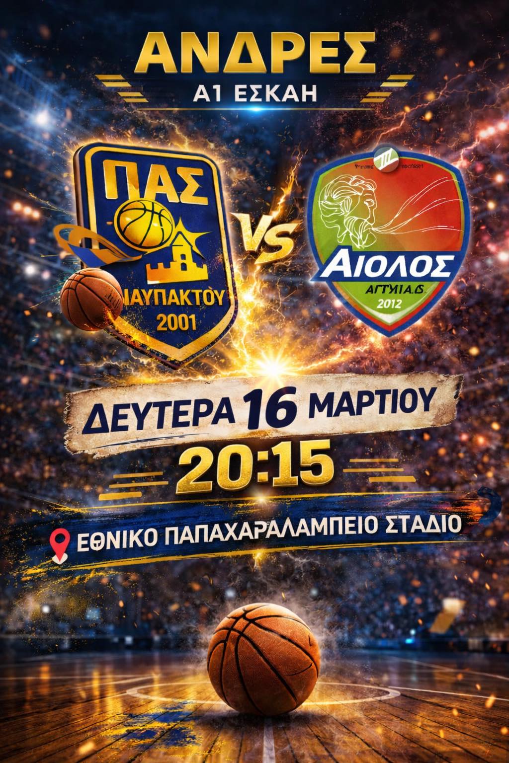 Για την 7η αγωνιστική του Β’ γύρου του πρωταθλήματος της Α1 ΕΣΚΑΗ ο ΠΑΣ Ναυπάκτου υποδέχεται, σήμερα Δευτέρα 16/03/2026 στις 20:15, στο Παπαχαραλάμπειο κλειστό γυμναστήριο τον Αίολο Αγυιάς. Η ομάδα του ΠΑΣ θέλει να επανέλθει στα θετικά αποτελέσματα για την κρίσιμη συνέχεια του πρωταθλήματος και σας περιμένει όλους στο πλευρό της, ώστε να δώσετε δυναμικό παλμό και ενέργεια, όπως κάνετε πάντα!!!!