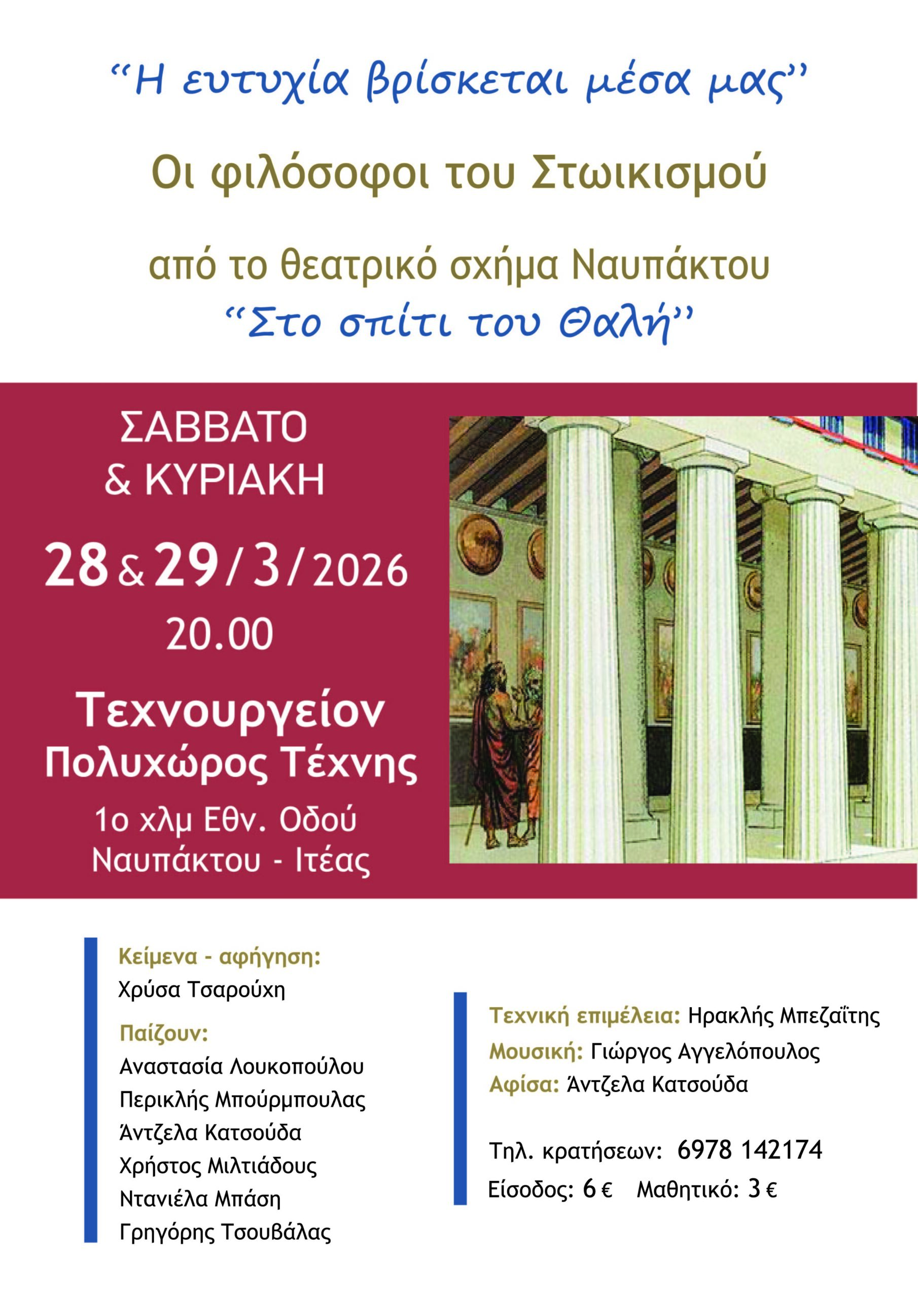 Σας περιμένουμε…με στωικότητα, στο Τεχνουργείον της Ναυπάκτου στις 28 και 29 Μάρτη και ώρα 20.00.