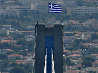 Η γαλανόλευκη ανεμίζει ήδη στους τέσσερις πυλώνες της Γέφυρας.