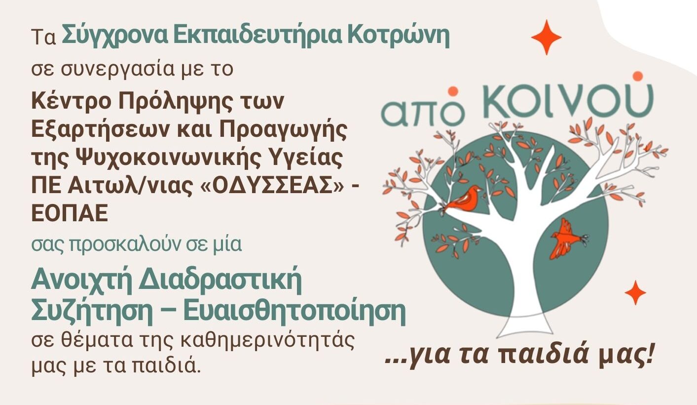 Διαδραστική συζήτηση για θέματα που αφορούν τα παιδιά την Τρίτη στα Σύγχρονα Εκπαιδευτήρια Κοτρώνη
