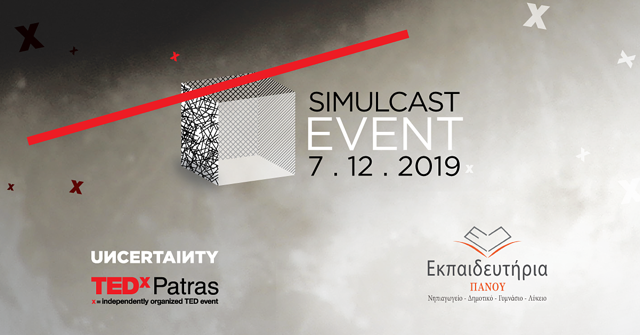 Κατά τη διάρκεια του Simulcast Event οι συμμετέχοντες θα έχουν τη δυνατότητα να παρακολουθήσουν σε ζωντανή αναμετάδοση όλα όσα συμβαίνουν στην κεντρική σκηνή του TEDxPatras, όπου σπουδαίοι ομιλητές θα μεταφέρουν ιδέες και οράματα για να εμπνεύσουν, να προβληματίσουν και να βοηθήσουν να προσεγγίσουμε την έννοια της «αβεβαιότητας».